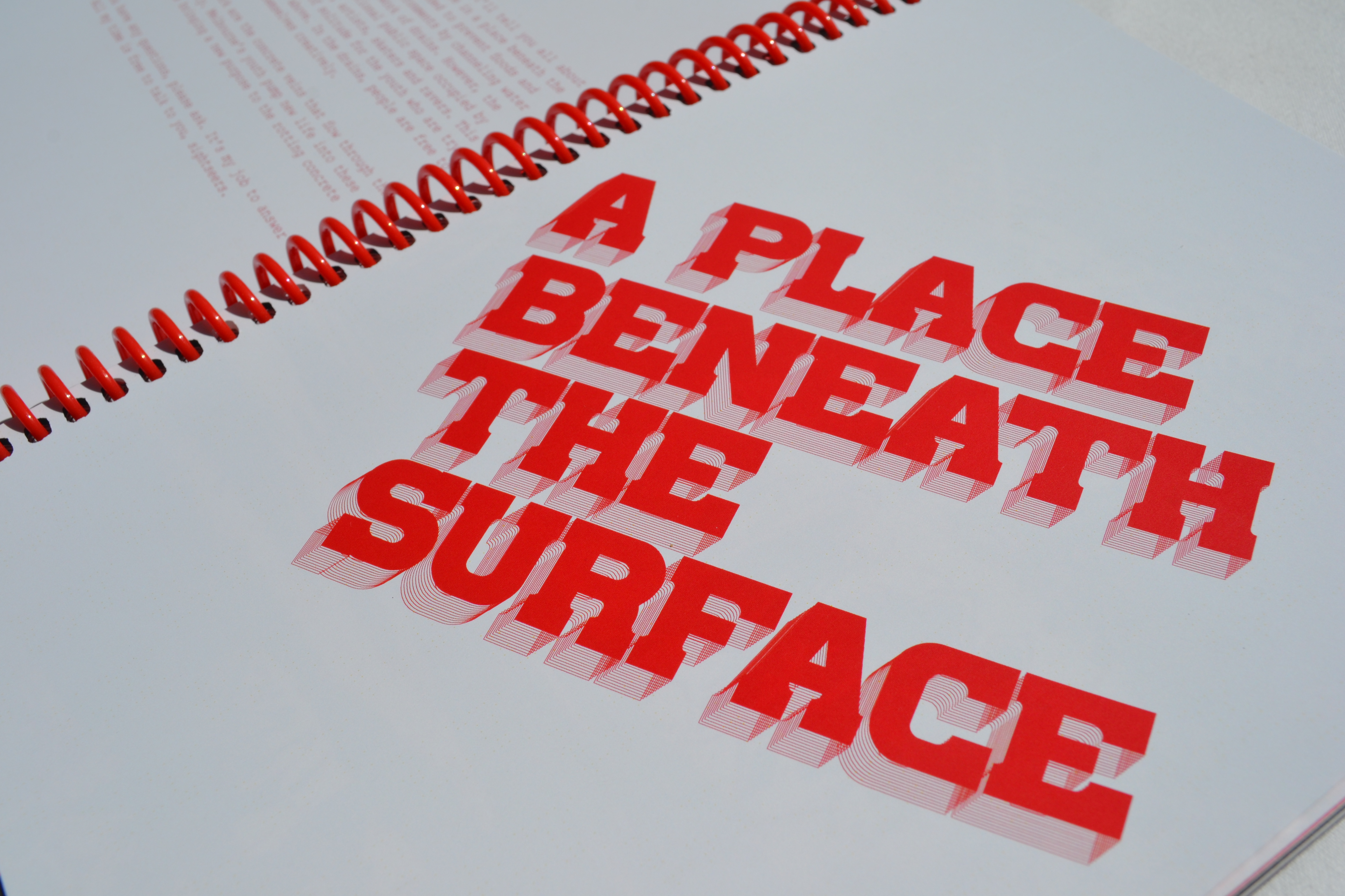 Through this publication design, I have endeavoured to capture the raw intencity of this environment and it’s vibrancy in a void of darkness. Architectural arches are explored in the serifs of the typography and the maze like network of drains are illustrated throughout which are complimented by the spiral coil binding.